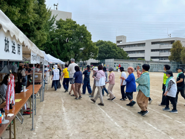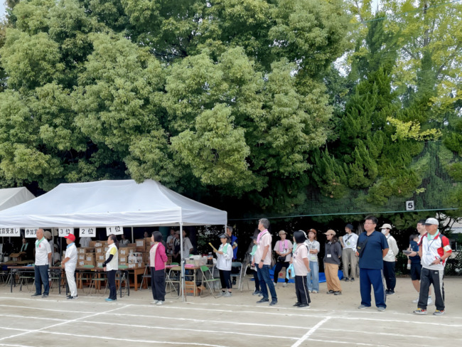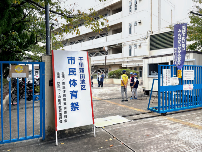 前日の11日(土)午前中には、千里新田小学校の運動会が開催され、午後から地域の各種団体の皆様により設営の準備が行われました。