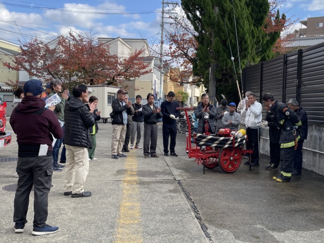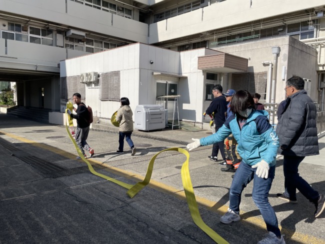 当日は、吹田市水道部および北消防署の方々に丁寧なご指導をいただき、自治会・まちづくり協議会の役員が熱心に訓練に取り組みました。