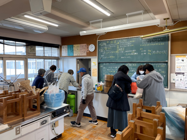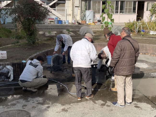 当日は、50キロの餅を用意し、早朝7時から湯沸かし作業を開始しました。スタッフが手分けして準備と運営にあたり、小・中学生も一緒になってもちつきを手伝ってくれ、13時30分過ぎには無事に終了しました。
