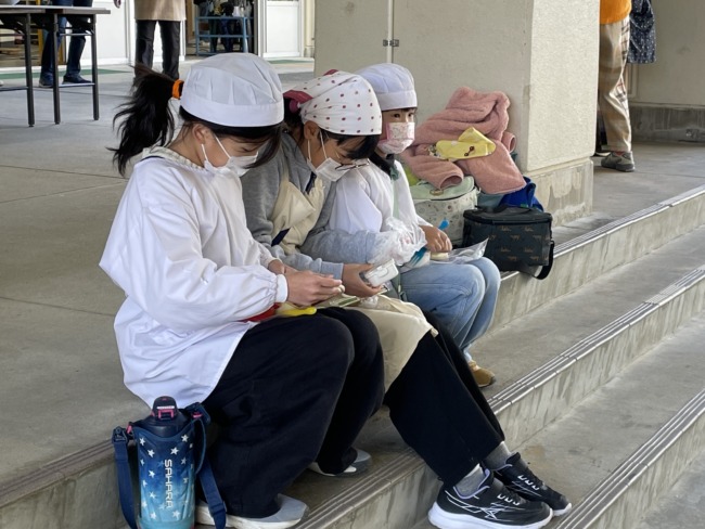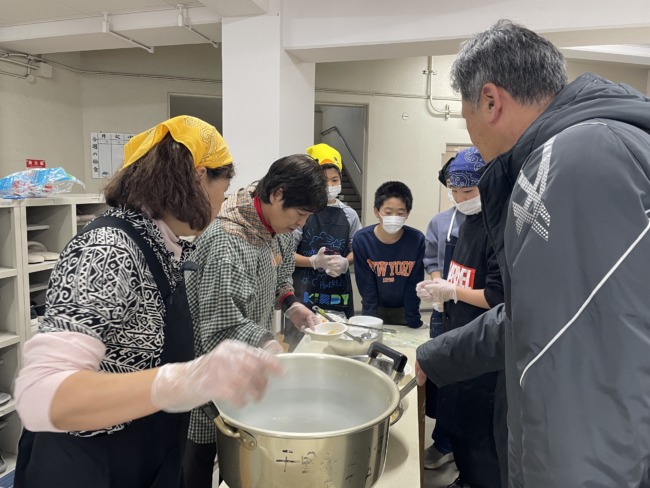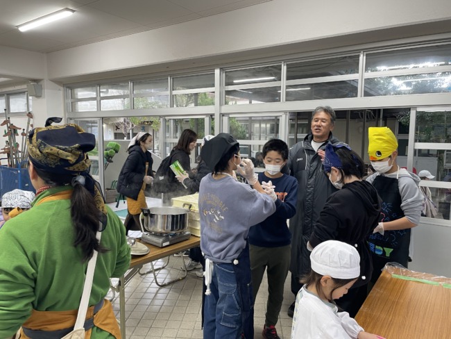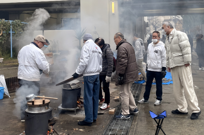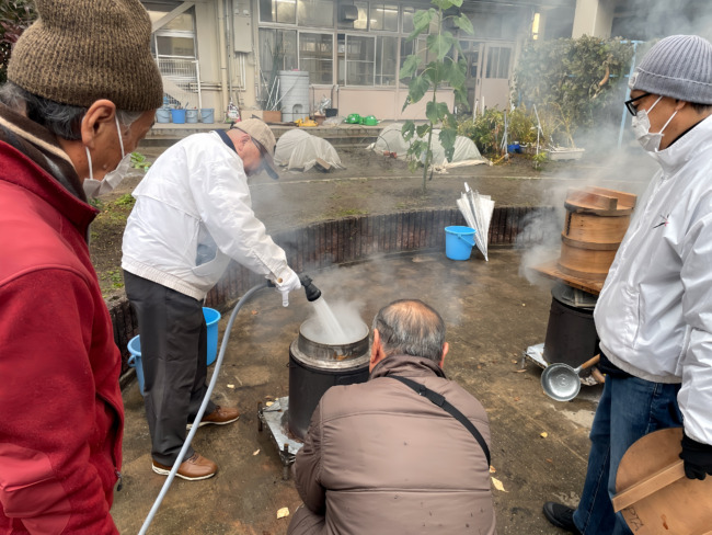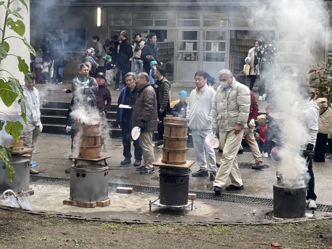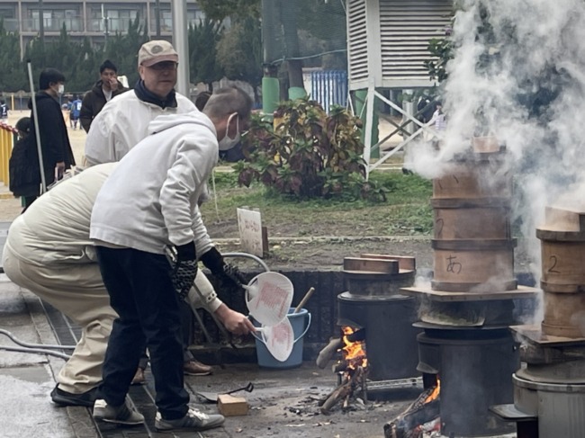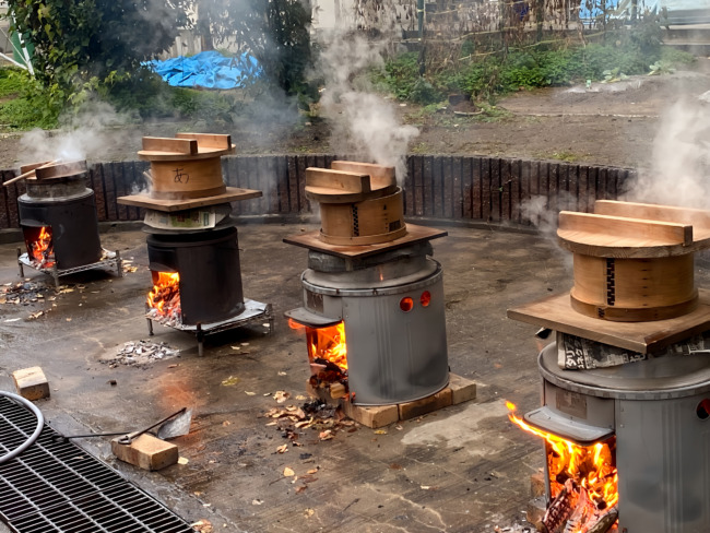 かまど班は早朝7時から火おこし、他のスタッフも、それぞれの持ち場で協力して準備を進めました。