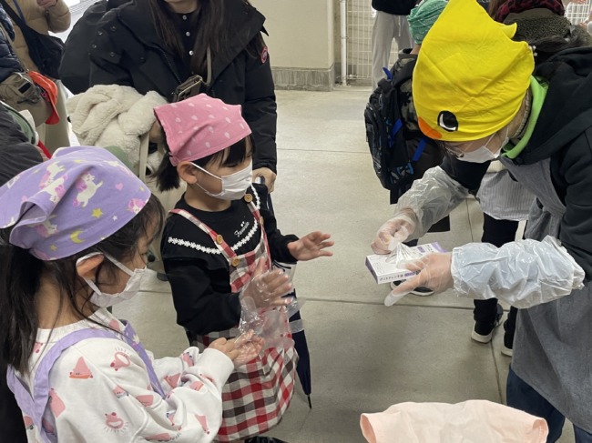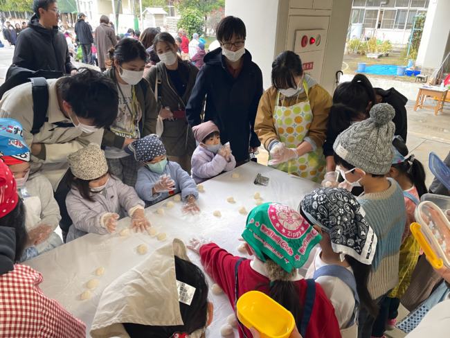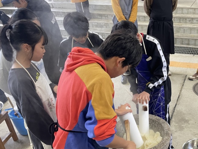 今回は、児童および園児に餅つき体験をしてもらい、ついた餅を食べてもらうことをメインに実施しました。なお、園児については、会場で餅を食べず、持ち帰り用の餅を用意しました。