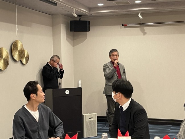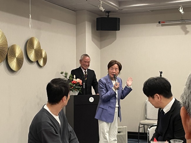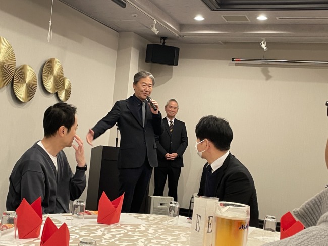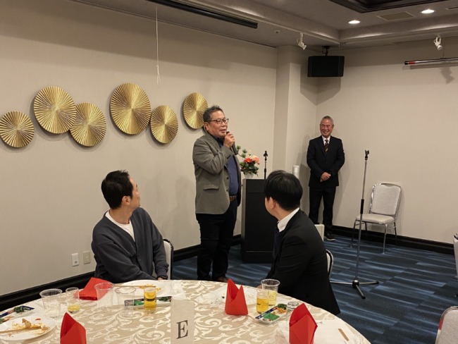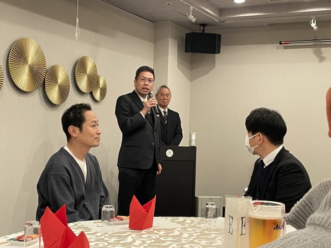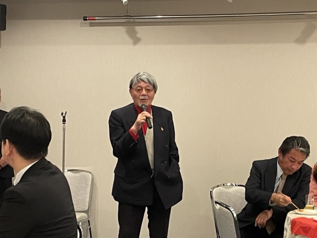 しばらくして、各種団体や学校関係者によるスピーチが始まり、思い思いの気持ちが語られ、笑いも交えながら大いに盛り上がりました。宴もたけなわとなったところで、森本副会長による中締めのあいさつが行われ、最後は一丁締めで、参加者の気持ちが「ひとつ」になりました。