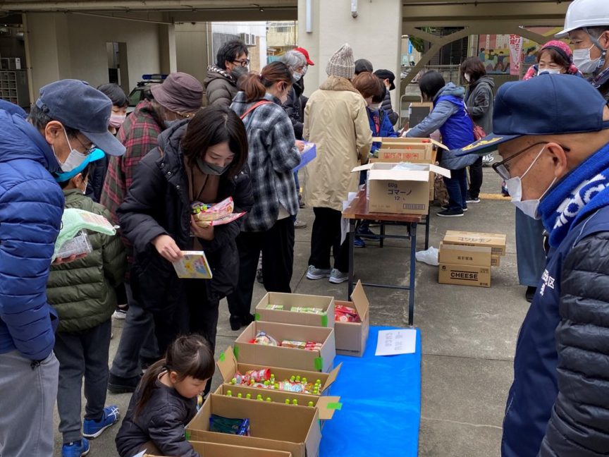 1月15日(日)の吹田市一斉合同防災訓練が終わった後、参加者のみなさんを対象に、「まちづくり協議会」主催の地域住民還元セール・バザーを行いました。