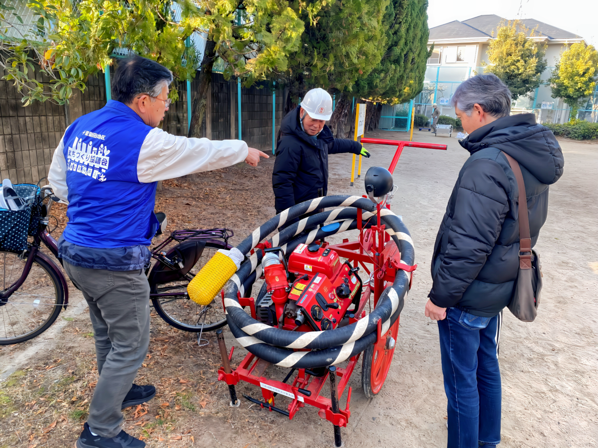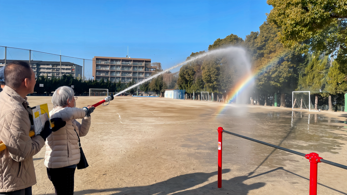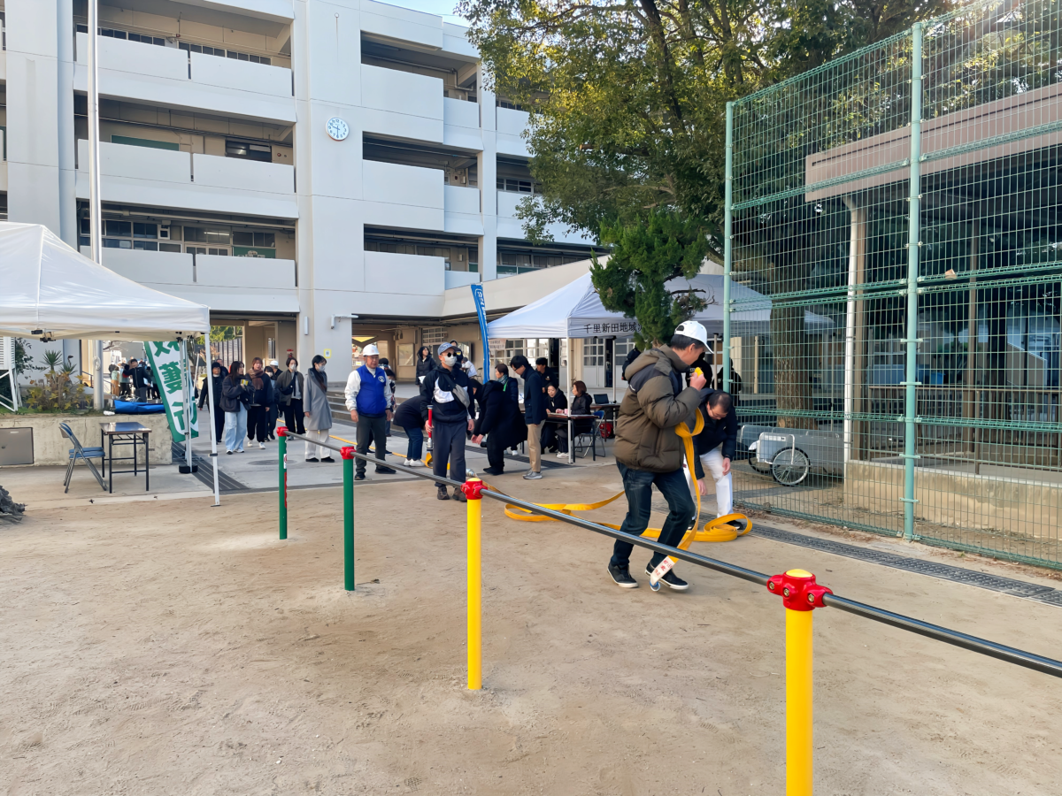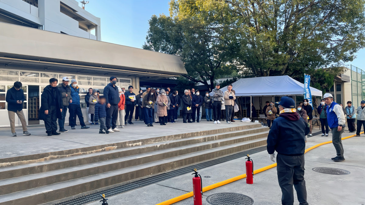 令和8年1月18日(日)午前9時30分、上町断層帯を震源としたマグニチュード7.5の直下型地震が発生し、吹田市全域で震度6強、断層付近の一部地域で震度7の大地震に襲われたとの想定で、連合自治会を中心とした各自治会での避難訓練とまちづくり協議会による合同防災訓練を千里新田小学校で実施しました。