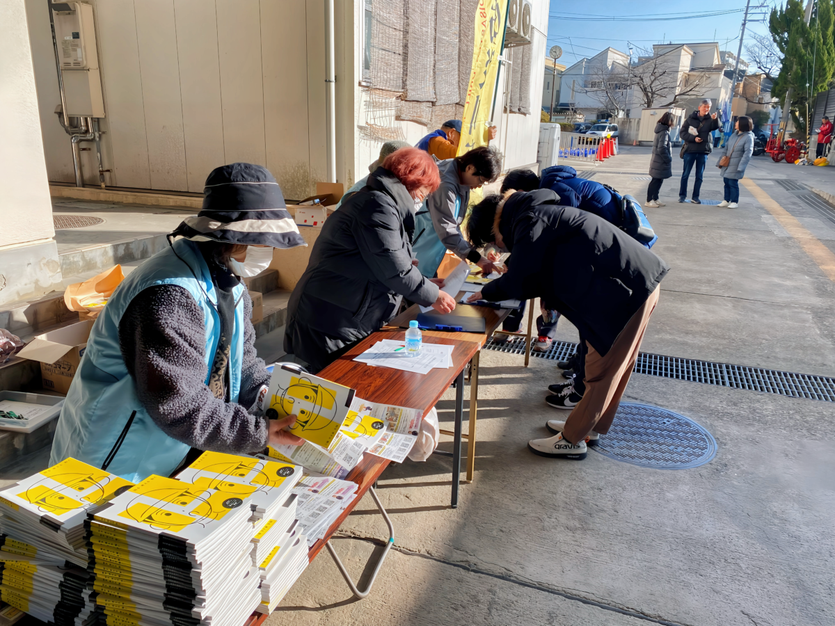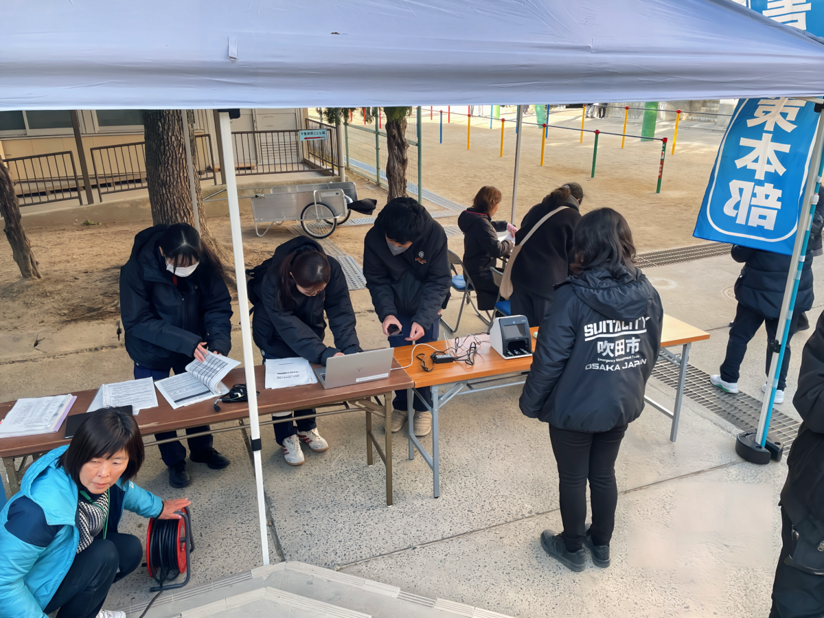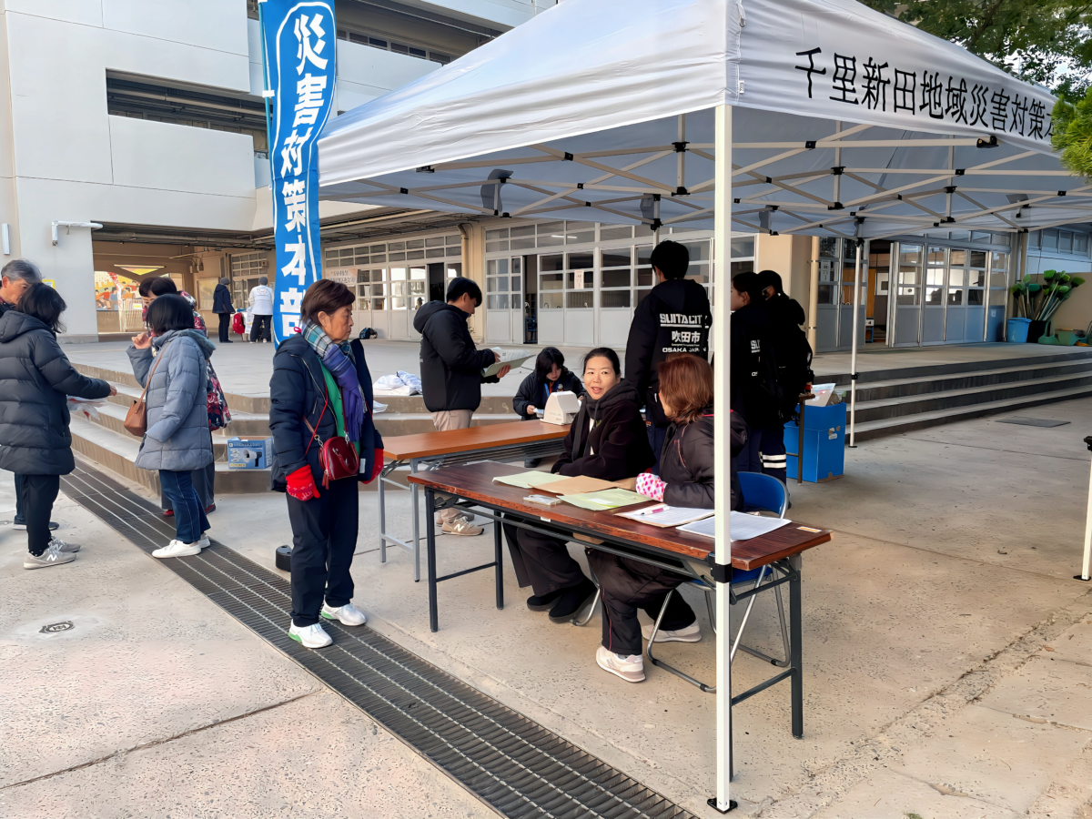この訓練は、吹田市にお住まいの皆さんを対象とした訓練です。いざというときの安否確認や避難方法について、地域一体となり、協力して実施しました。