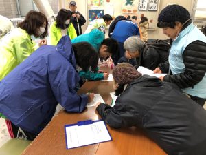 午前9時30分に震度6強の地震が発生したとの想定で避難訓練を実施しました。自治会等が決めた一次避難地に集合した後、地域災害対策本部が設置された千里新田小学校の二次避難地に移動する訓練を行いました。