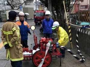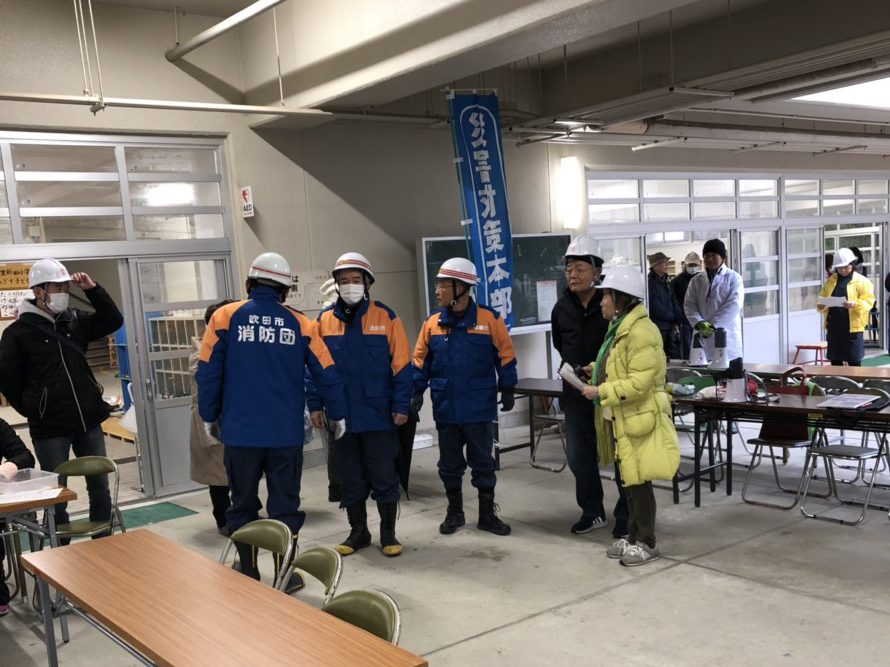 スタッフとしては、消防団(千二分団と春日班及び本部)12名と市役所の防災要員5名及び教員や地域30名が参加しました。