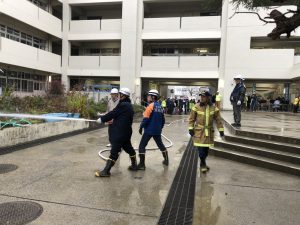 1月20日(日)に防災訓練を行いました。あいにくの小雨となり例年に比べて参加者は少なかったですが、中味の濃い訓練を行うことができました。