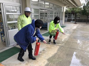 - その他の訓練としては、避難者カードの記入や、水消火器による放水訓練をまた災害が起きた場合の注意事項などの説明を行いました。