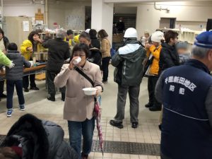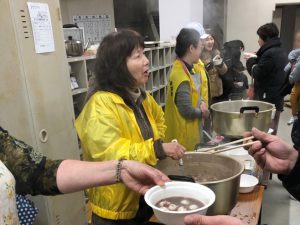 - 最後に、恒例の炊き出し訓練としてあたたかいぜんざいをふるまい、寒い小雨の中、参加された皆さんにほっこりした気分になっていただき訓練を終了しました。