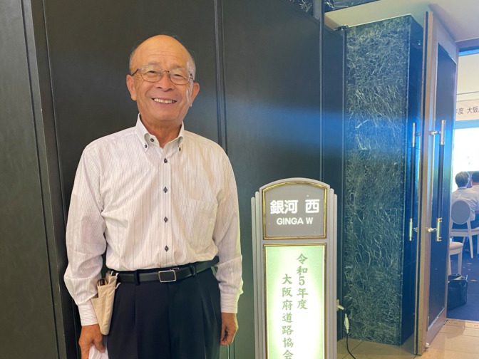 2023年8月4日(金)大阪府道路協会の総会があり、その場でアドプトロード・千新が道路功労者として表彰を受けました。まち協は、地域環境美化活動として2010年9月からコーヨー南千里店から新御堂にいたる道路の清掃・除草をアドプトロード・千新として活動してきました。その活動が認められ、当日は担当理事である松山さんと大野さんがまち協の代表として参列し、表彰を受けました。