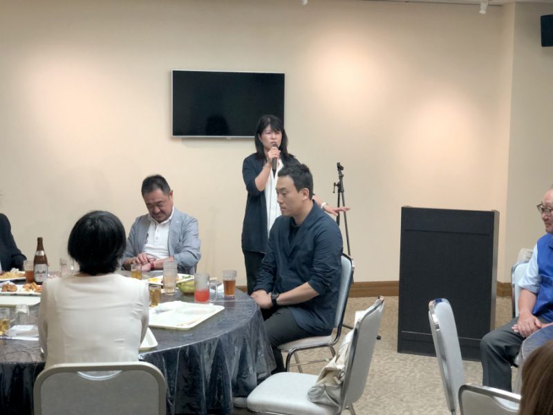 俊会長のご挨拶、諏訪前会長の乾杯のご発声で、和やかな雰囲気で当会はスタートしました。先生方からのスピーチでは、短い期間ではあったもののとても中身の濃い仕事ができた学校・園であったことの紹介に加え、他校ではなかなか経験できない地域の皆さんとの良い関わりがもてたことへの感謝の言葉を頂きました。そして、それぞれの校長・園長からも、異動の方々に激励の言葉をいただき、最後に出口副会長の闊達なご挨拶で中締めとなりました。