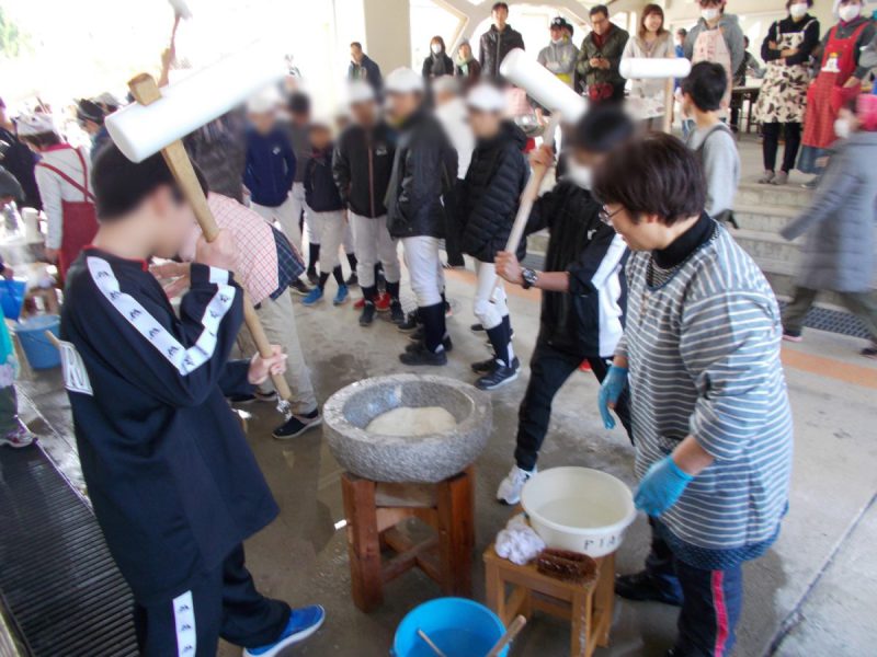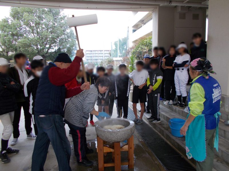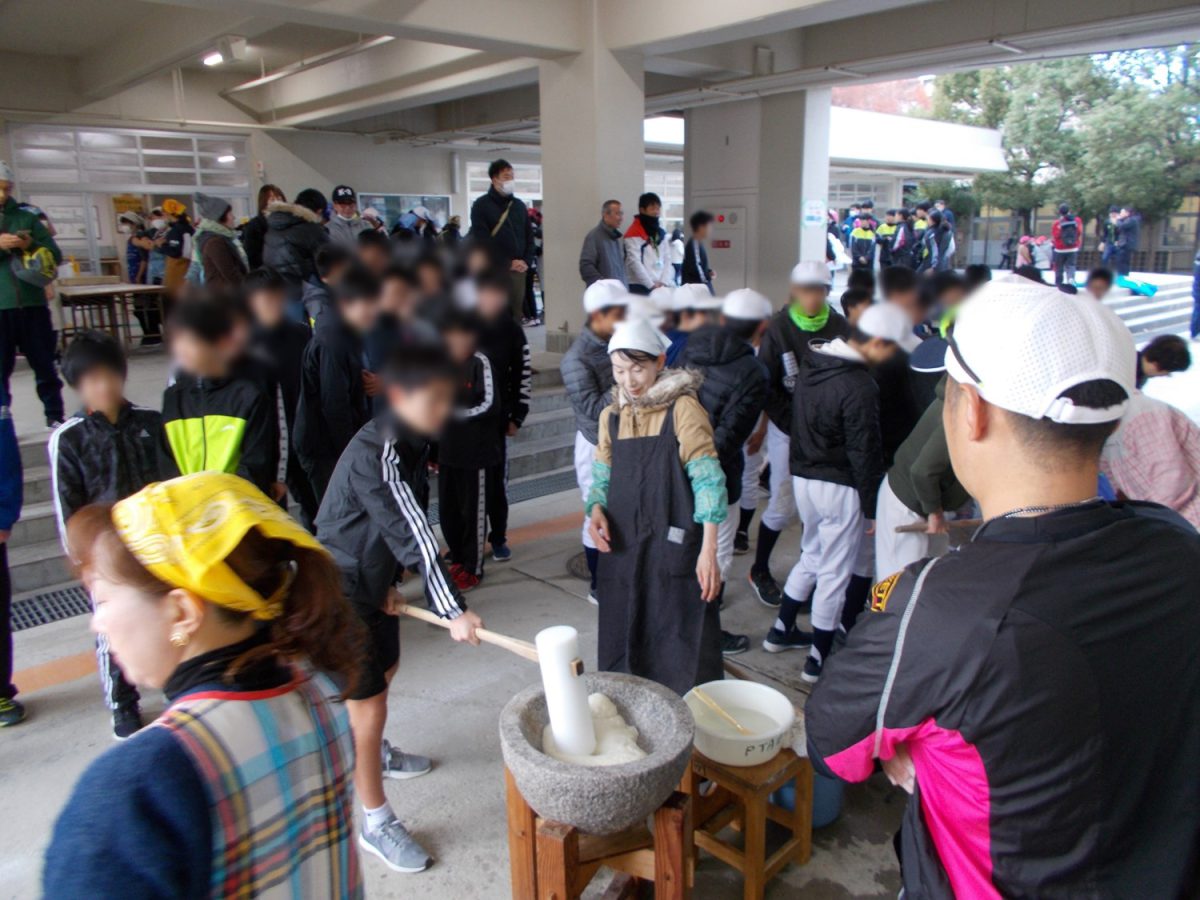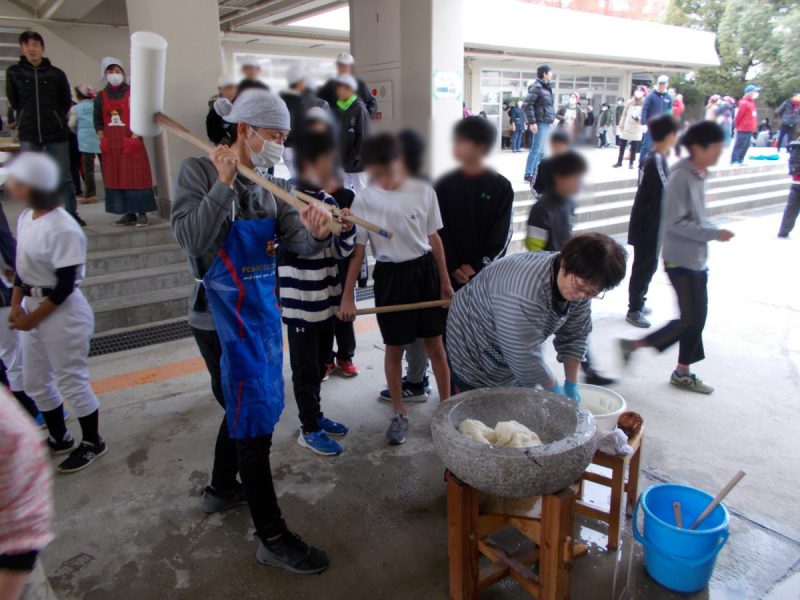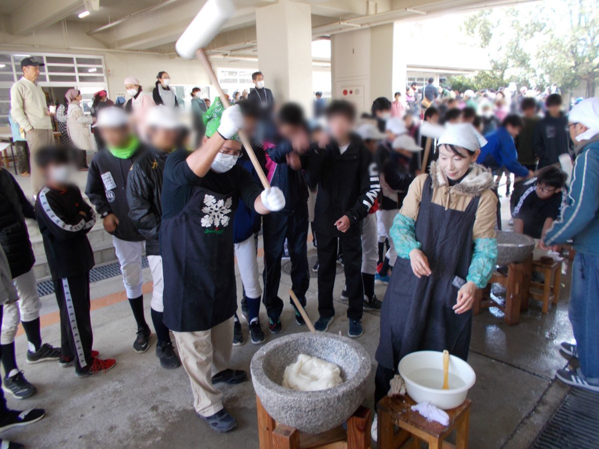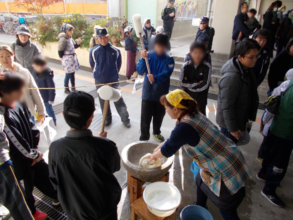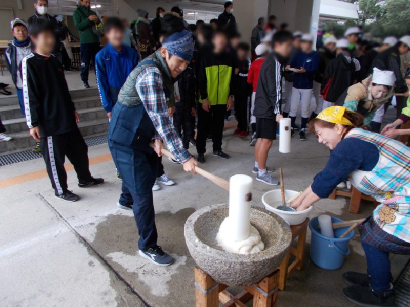12月15日(日)9 時から千里新田小学校にて「子どももちつきフェスタ」を開催しました。今年の餅つきは、令和時代スタート年、晴天に恵まれ、気温も少し高く、素晴らしい天候になり、参加者も今までにない新記録が出ました。