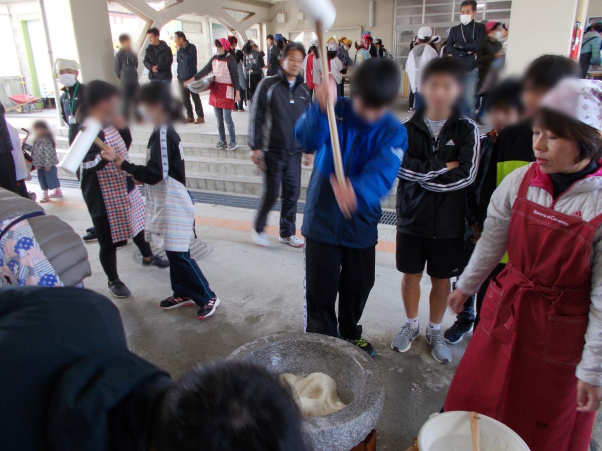 1,081名(スタッフも含め)の参加を頂き、盛大な餅つきになりました。子供たちと保護者も楽しそうにお餅を食べておられました。また、今回も中学生の協力を得て、無事時間内に終了することができ、令和時代に向けての良い一日になったと思います。